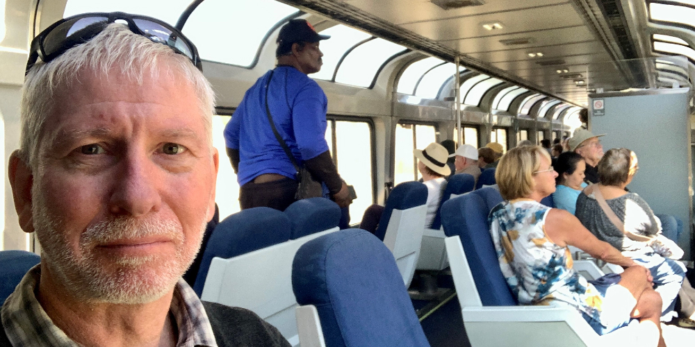Arne i Amtraks "observation car" på vei fra Denver til Salt Lake City.