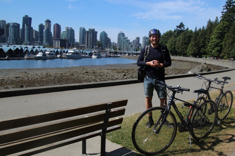 Kasper på sykkeltur i Stanley Park, Vancouver, Canada